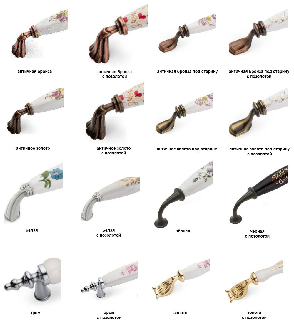 | Цвет покрытия | хром; античное золото; античная бронза; золото; чёрная; белая; античное золото под старину; античная бронза под старину |